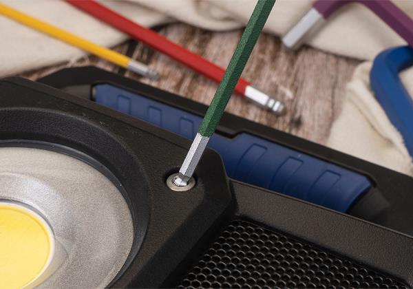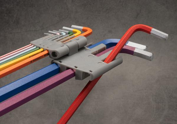 Kodowanie kolorami według rozmiaru. Dodatkowo wewnętrzny grawer z rozmiarem klucza.Klucze wykonane z materiału S2.Unikalna konstrukcja – w dolnej części głowicy kulowej kąt nachylenia to 25°, co pozwala na pracę w wąskich przestrzeniach.Stojak można otworzyć, a klucze łatwo wyjąć.W zestawie klucze: H1.5, H2, H2.5, H3, H4, H5, H6, H8, H10.