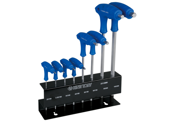 ZESTAW IMBUSÓW Z UCHWYTEM “L” 8szt. 1160 – HEX / HEX Z KULKĄ 2 – 10mm, STOJAK King Tony