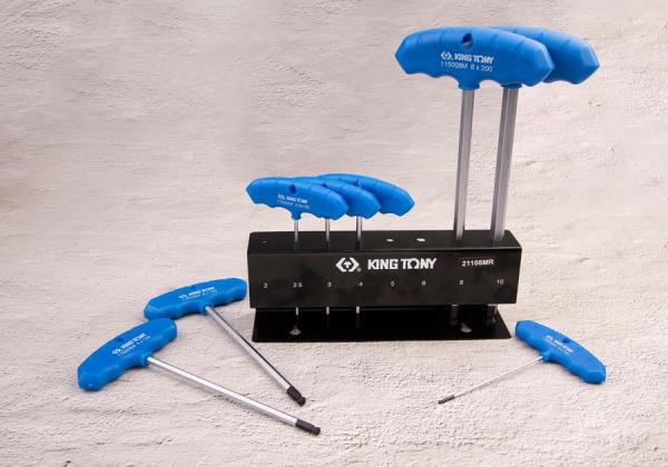 ZESTAW IMBUSÓW Z UCHWYTEM “T” 8szt. 1150 – HEX Z KULKĄ 2 – 10mm, STOJAK King Tony