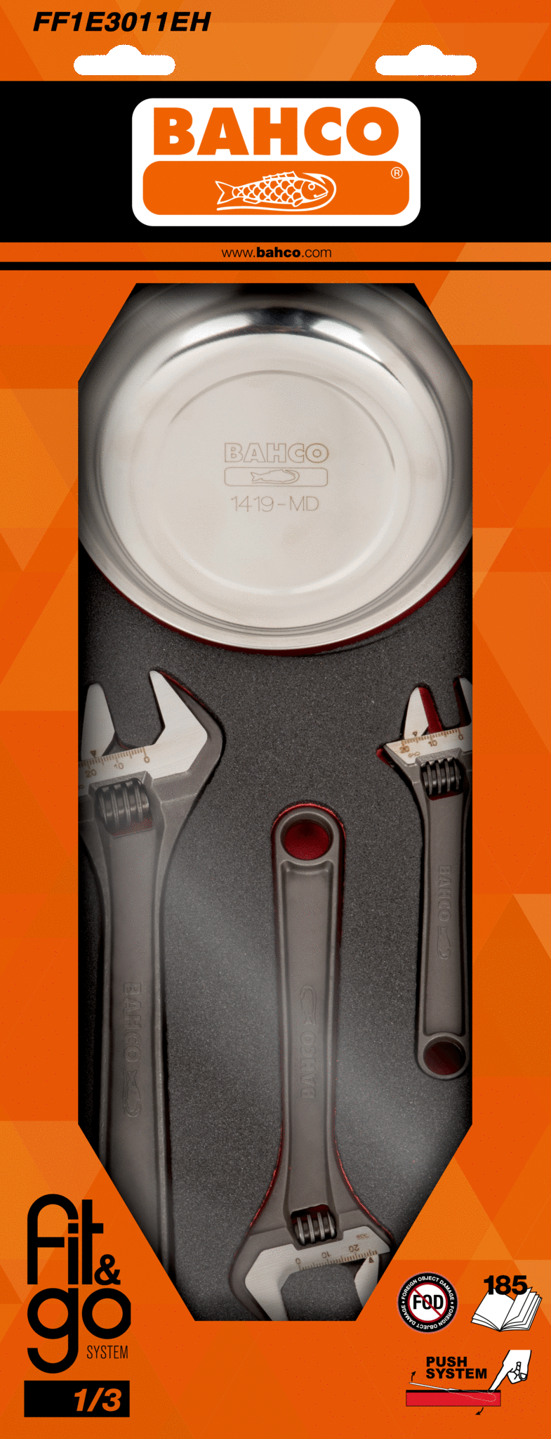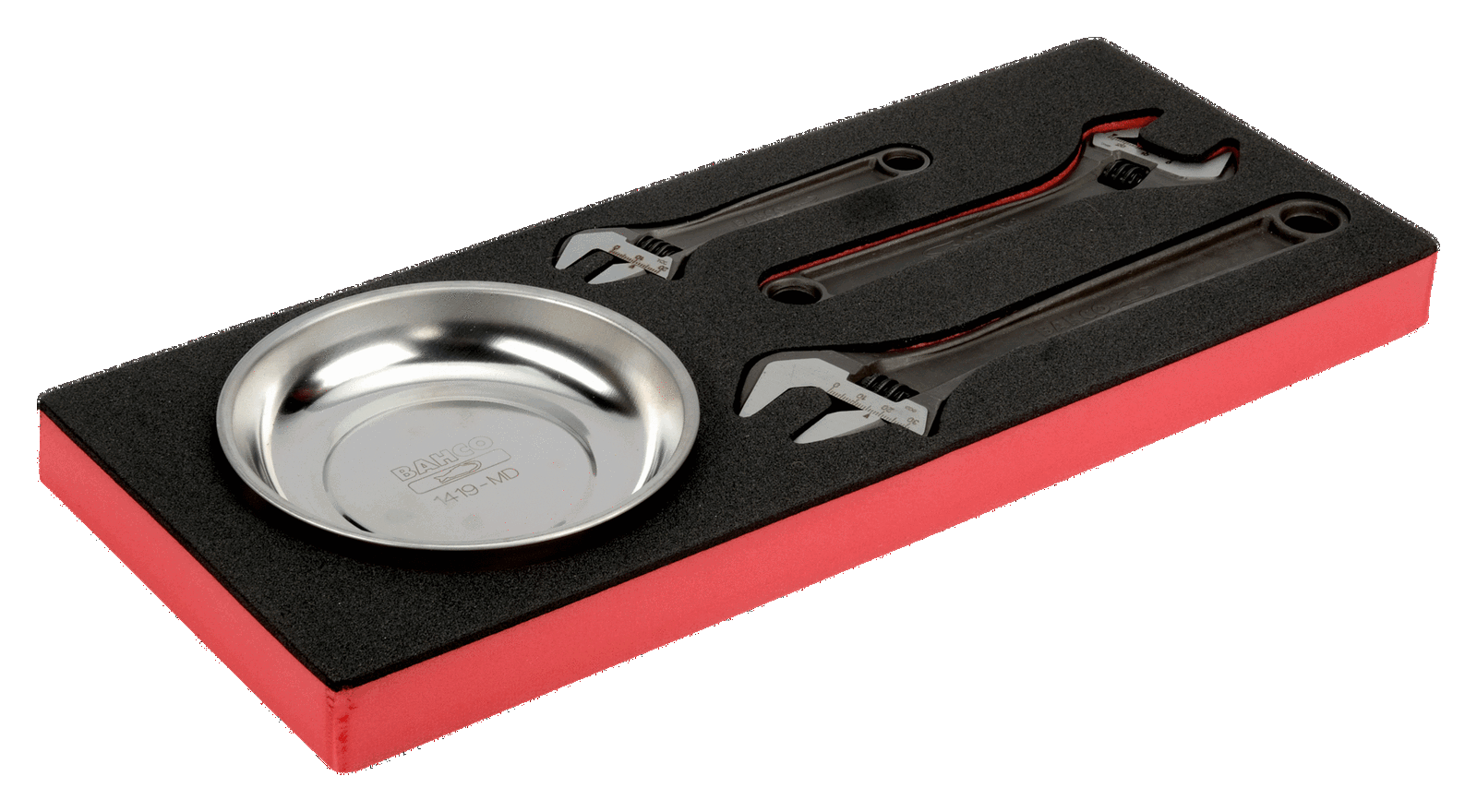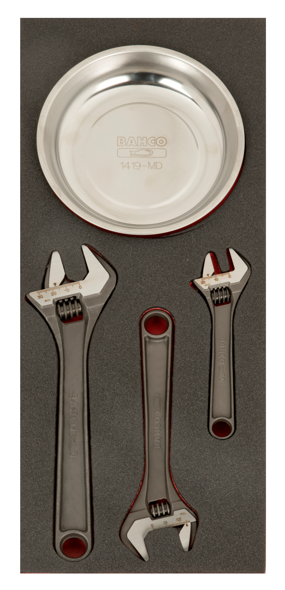 Zestaw kluczy nastawnych z podstawką magnetyczną 4 szt. w wkładce z pianki Fit&Go 1/3 BAHCO