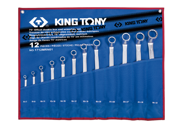 ZESTAW KLUCZY OCZKOWYCH ODGIĘTYCH 75° 12cz. 6 – 32mm, ETUI King Tony