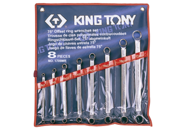 ZESTAW KLUCZY OCZKOWYCH ODGIĘTYCH 75° 8cz. 6 – 23mm, ETUI King Tony