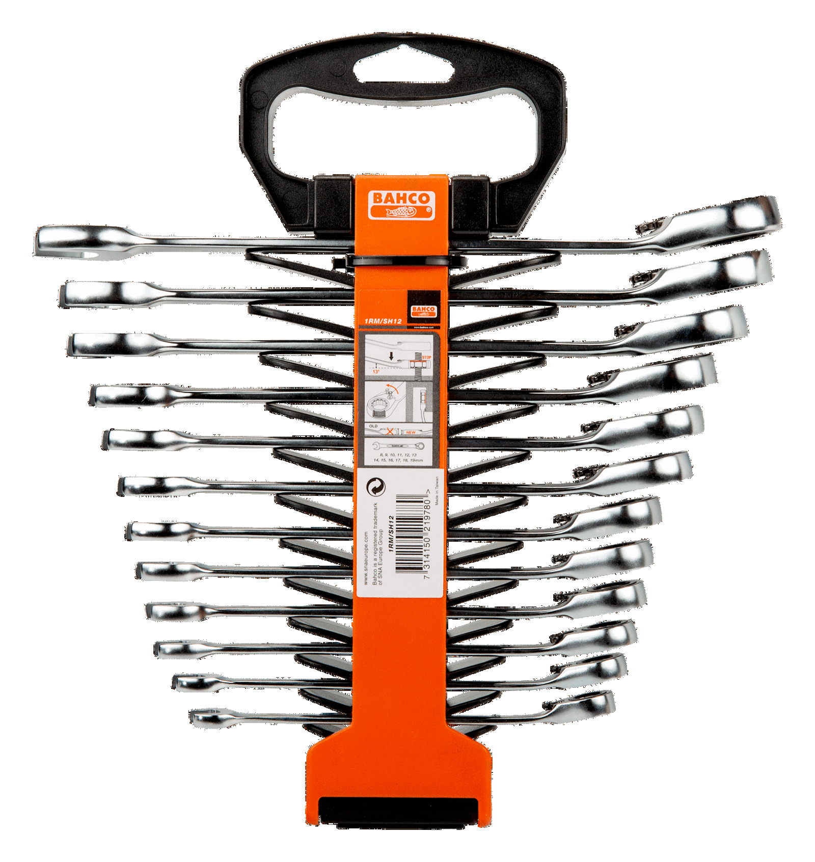 Zestaw kluczy płasko-oczkowych z grzechotką 12 szt. (zakres 8-19) BAHCO