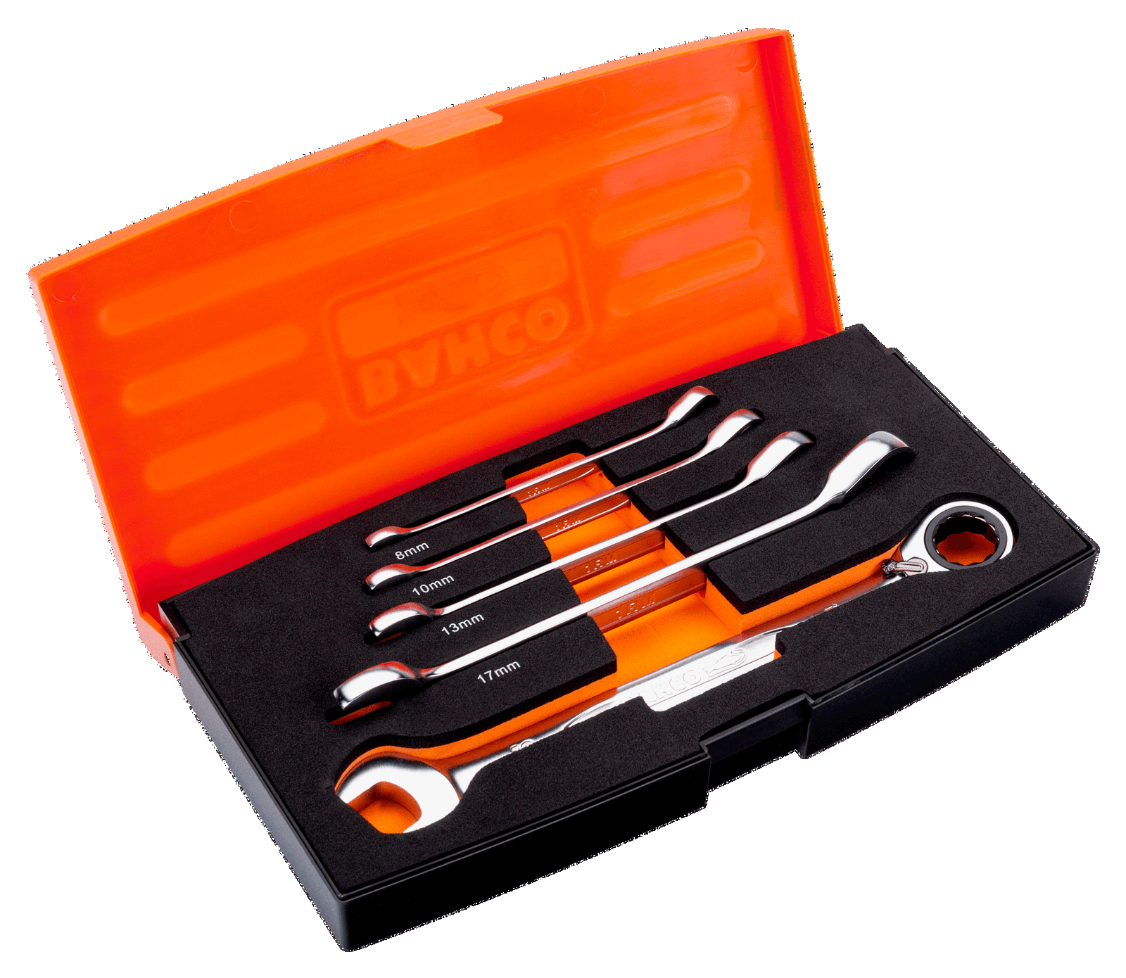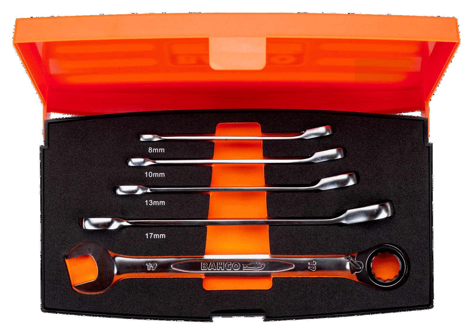Zestaw kluczy płasko-oczkowych z grzechotką 5 szt. (8,10,13,17,19) BAHCO