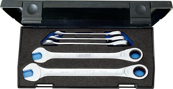 Zestaw kluczy płasko-oczkowych z grzechotką, 8-19mm,, 5-cz. GEDORE