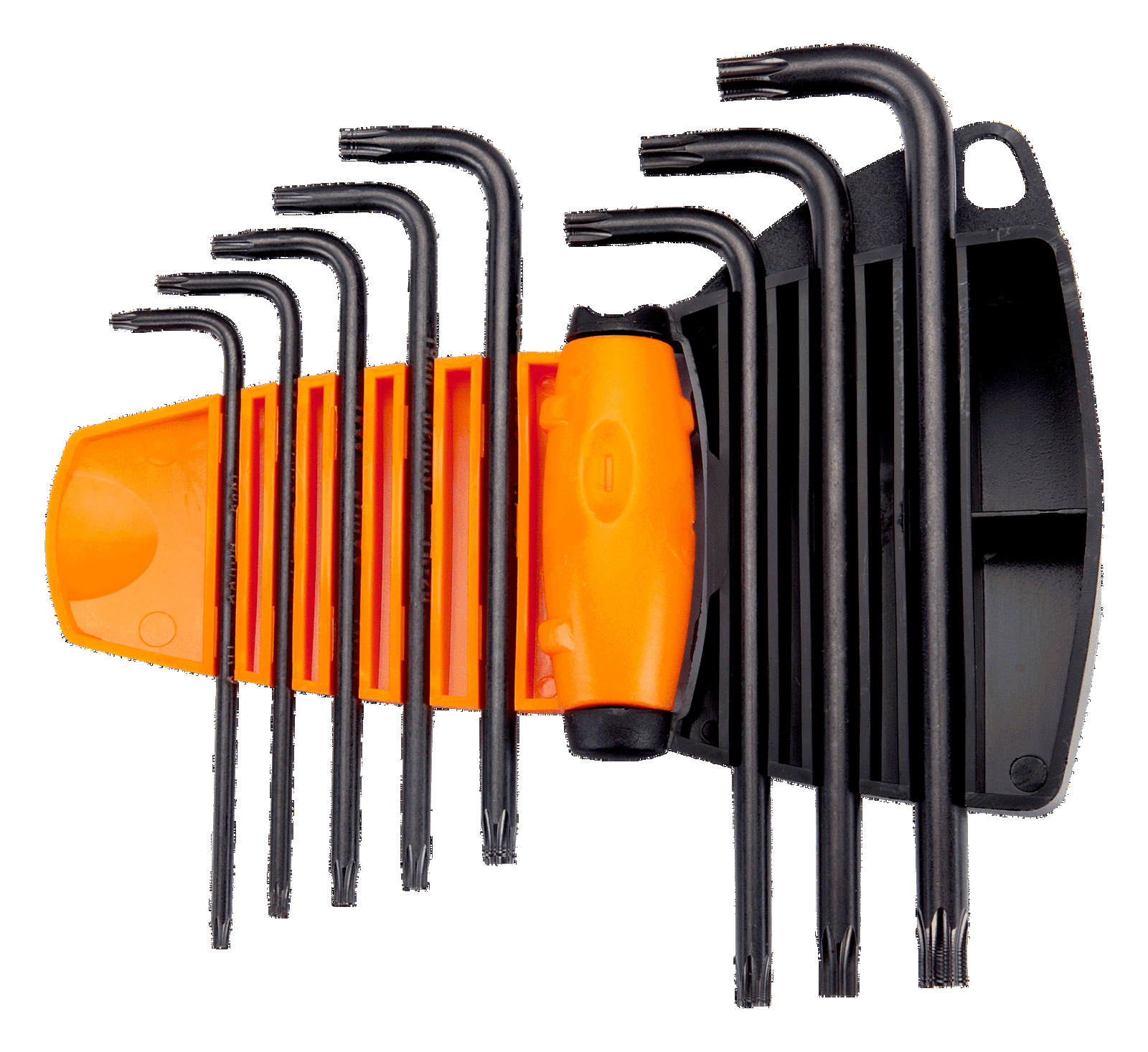 - Zestaw wydłużonych kluczy trzpieniowych, czarnych do śrub TORX® i TORX ® z bolcem centrującym 8 sztuk