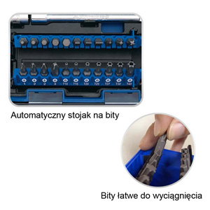 Seria Atom. Kieszonkowy rozmiar opakowania 170 x 95 x 51mm.Automatyczny stojak na bity, dzięki któremu łatwo się je wyciąga.
