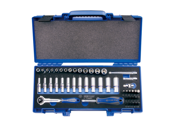 ZESTAW NARZĘDZI 1/4″ 48cz. NASADKI DŁUGIE + KRÓTKIE, 6-kąt. 4 – 14mm, HEX 3 – 10, Z GRZECHOTKĄ I AKCESORIAMI, WALIZKA King Tony