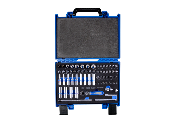 ZESTAW NARZĘDZI 1/4″ 65cz. NASADKI KRÓTKIE + DŁUGIE, 6-kąt. 4 – 14mm, BITY, Z GRZECHOTKĄ I AKCESORIAMI, WALIZKA King Tony