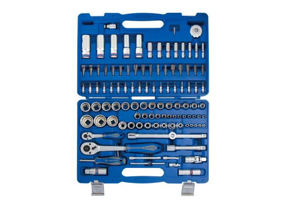 ZESTAW NARZĘDZI KING TONY,NASADKI, BITY, WKRĘTAKI, KLUCZE, SZCZYPCE, MŁOTEK, LATARKA 110 cz. W WALIZCE King Tony