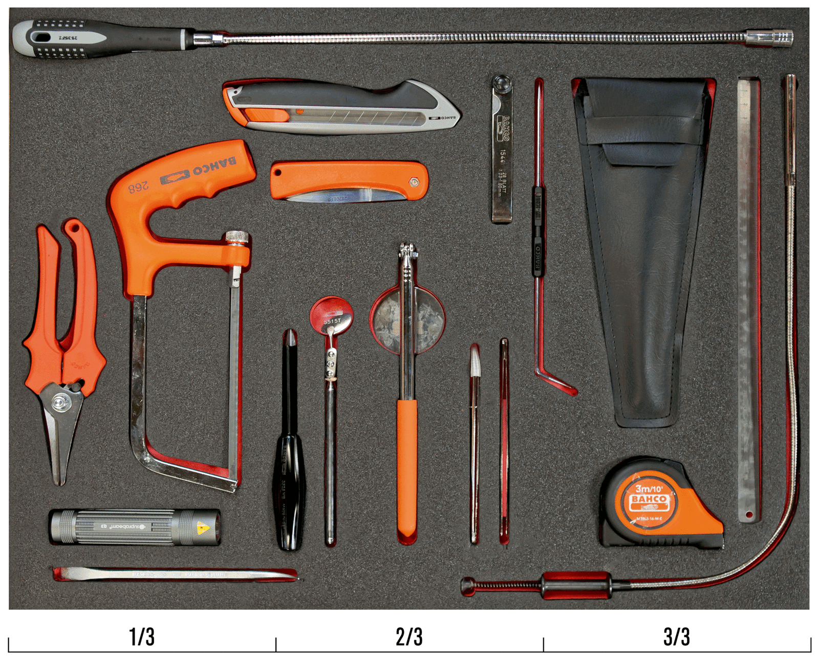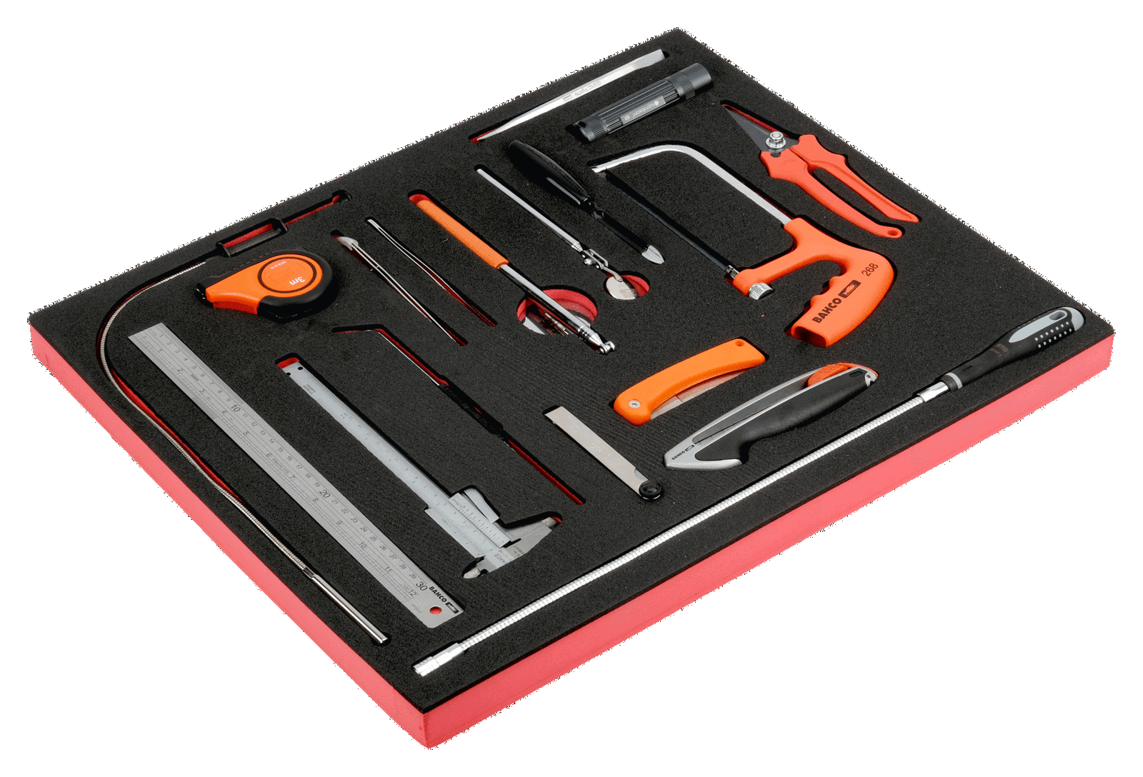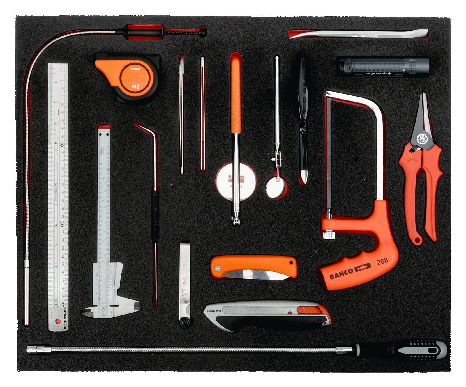 Zestaw narzędzi mierniczych i innych w wytłoczce 18 elementów BAHCO