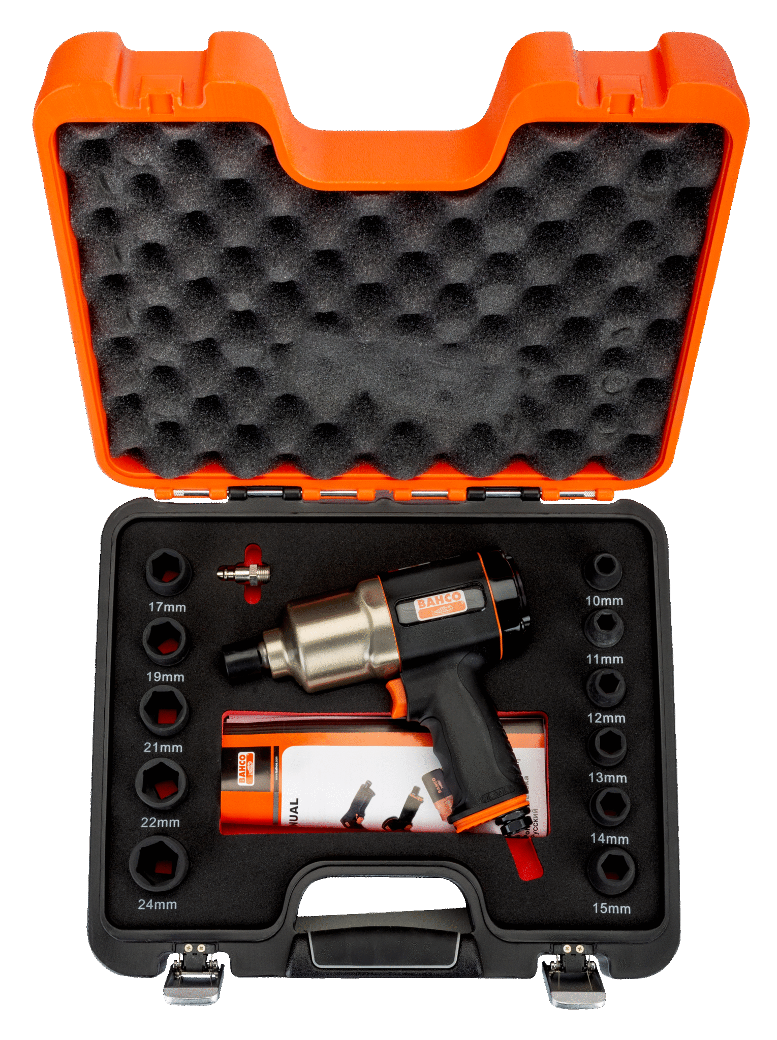 - Nasadki udarowe: 10, 11, 12, 13, 14, 15, 17, 19, 21, 22, i 24 mm