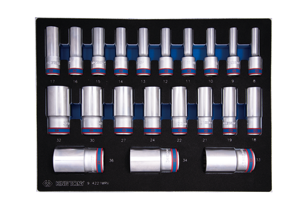 ZESTAW NASADEK 1/2″ 21cz. DŁUGIE 12-kąt. 8 – 36mm, WKŁAD DO WÓZKA King Tony