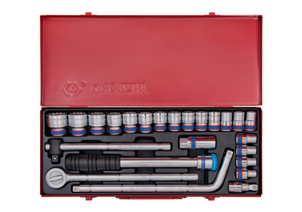 Zestaw narzędzi 1/2″ King Tony w metalowej kasecie. W zestawie znajdują się nasadki krótkie, 12-kątne, nasadka do świec 21 mm 12-kątna, grzechotka wraz z przedłużką do grzechotki, pokrętło przesuwne oraz pokrętło typu L. Nasadki w rozmiarach [ mm ]: 10, 11, 12, 13, 14, 15, 16, 17, 18, 19, 20, 21, 22, 23, 24, 27, 30, 32. Karta produktu – 4024MR