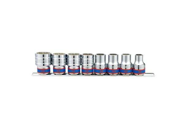 Zestaw nasadek 1/2″ King Tony na metalowej szynie o długości 230 mm. W zestawie 8 nasadek 12-kątnych krótkich w rozmiarach: 10, 12, 13, 14, 17, 19, 21, 22 mm. Karta produktu – 4010MR