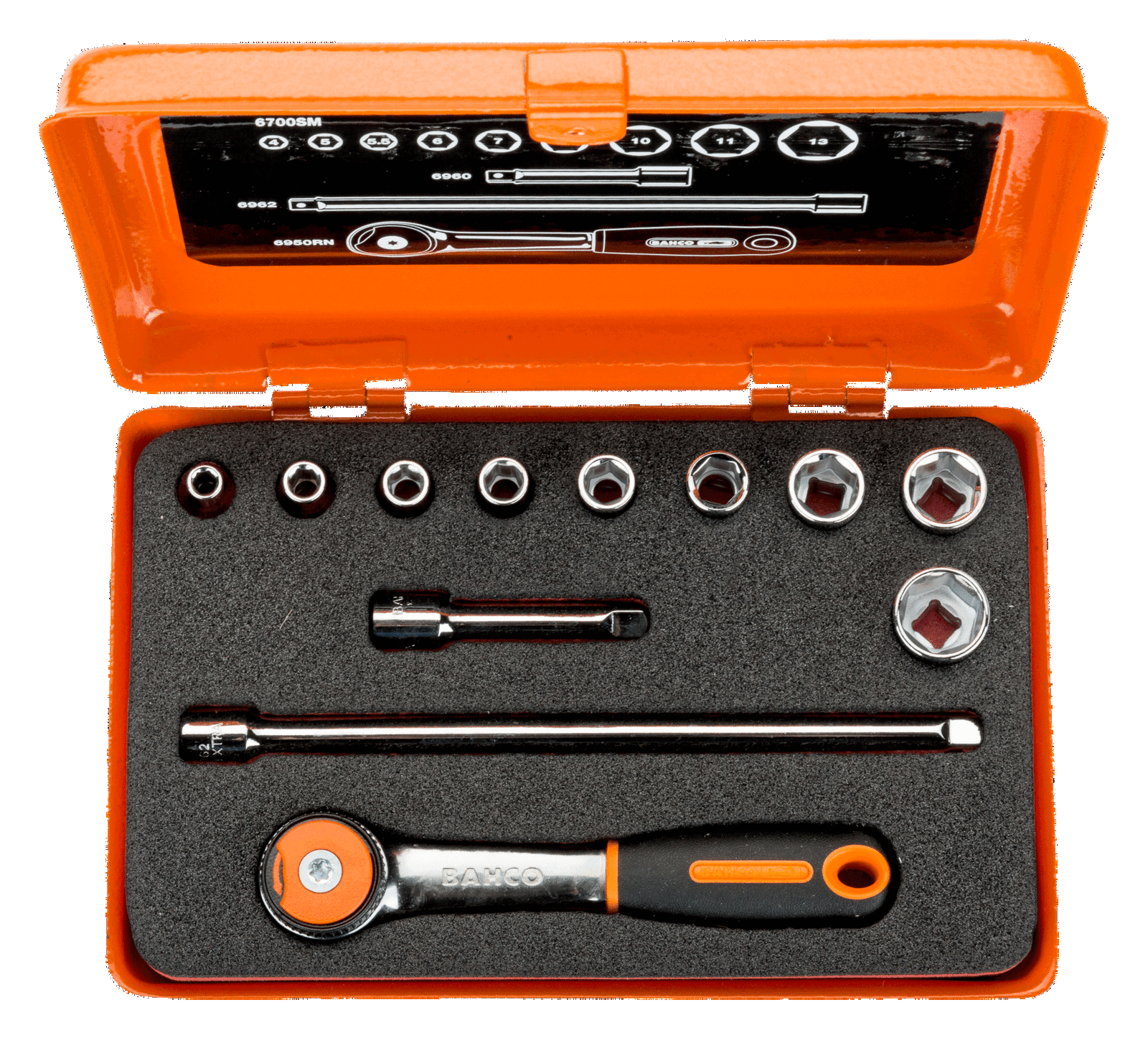 Zestaw nasadek 1/4″, 12 części, Metalowa skrzynka BAHCO