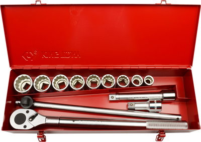 W zestawie:6330M – nasadki krótkie 3/4″, 12-kątne w rozmiarach: 19, 24, 27, 30, 32, 33, 36, 38, 416779-20F – grzechotka 3/4″, 24 zęby, 500 mm 6251-04 – przedłużka 3/4″, 100 mm 6251-08 – przedłużka 3/4″, 200 mm 6572-20 – pokrętło przesuwne 3/4″, 500 mm
