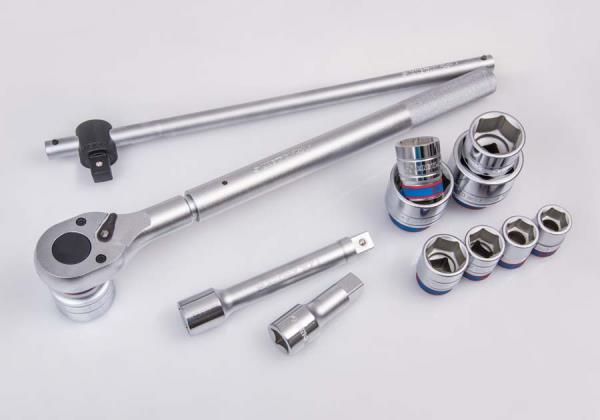 W zestawie:- nasadki krótka 3/4″ 6-kątna w rozmiarach (6335M) : 22, 24, 27, 30, 32, 36, 38, 41, 46, 50 mm – przedłużki 3/4″ (6251-04 i 08) w rozmiarach: 100 i 200 mm – grzechotka 3/4″, 500 mm (6779-20F) – pokrętło przesuwne 3/4″, 500 mm (6572-20) Karta produktu – 6314MR12