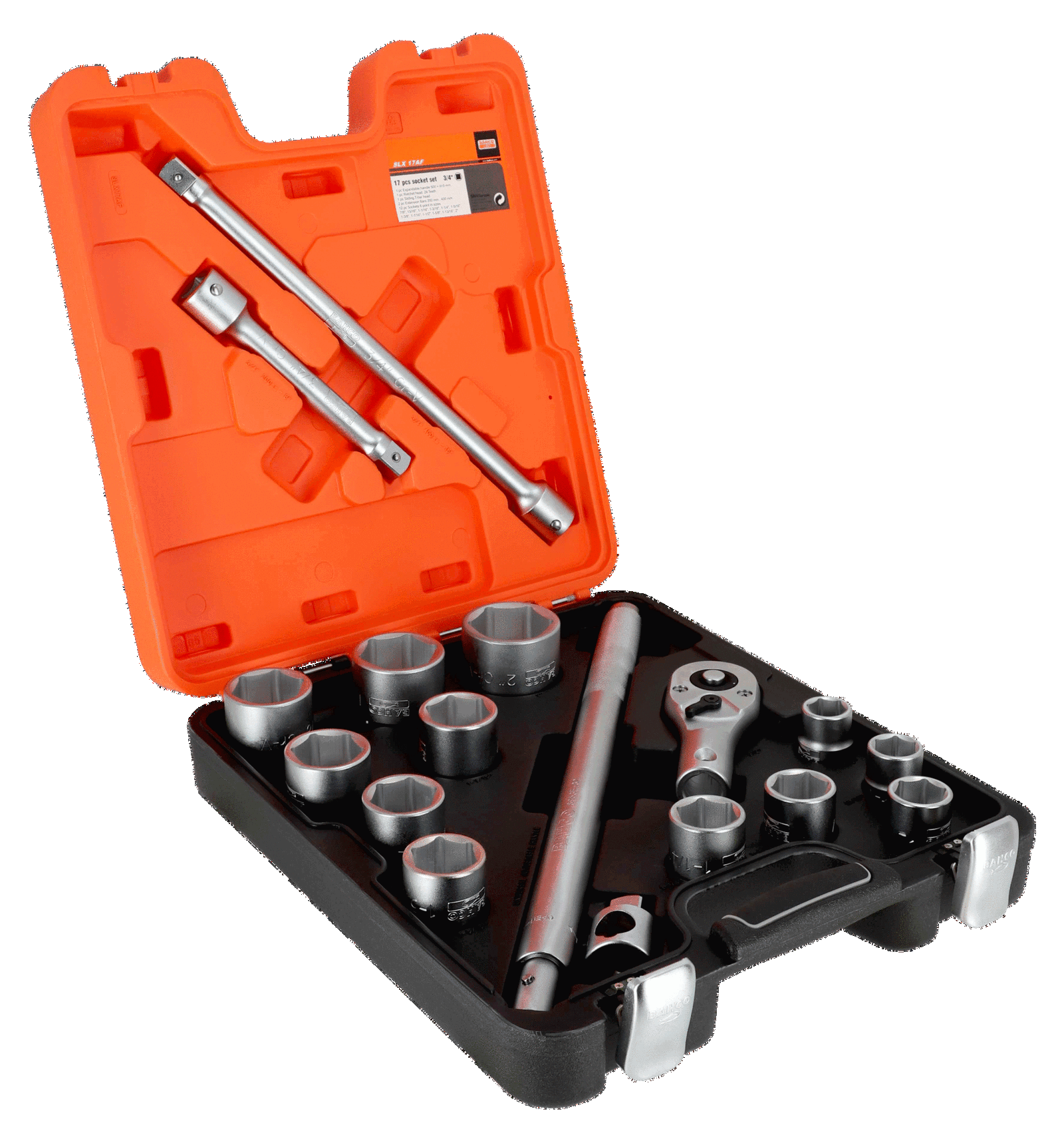 - 12 sztuk 3/4” nasadek 6-kątnych: 11/16”, 13/16”, 15/16”, 7/8”, 1.1/4”, 1.5/16”, 1.3/8”, 1.7/16”, 1.1/12”, 1.5/8”, 1.13/16”, 2”