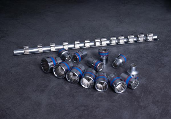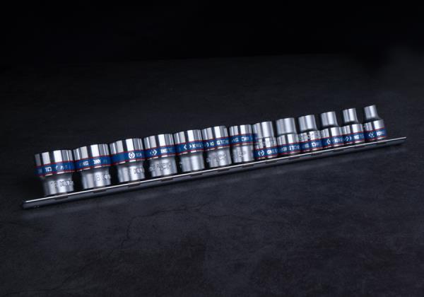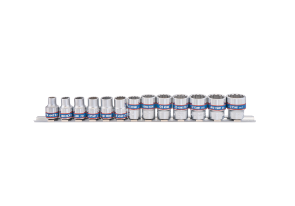 Zestaw 13 nasadek 3/8″ King Tony na szynie długości 290 mm. Szyna łatwa w montażu na ścianie. W zestawie krótkie nasadki 12-kątne w rozmiarach: 7, 8, 9, 10, 11, 12, 13, 14, 15, 16, 17, 18, 19 mm. Karta produktu – 3013MR