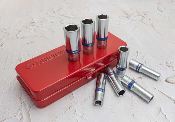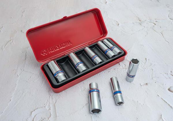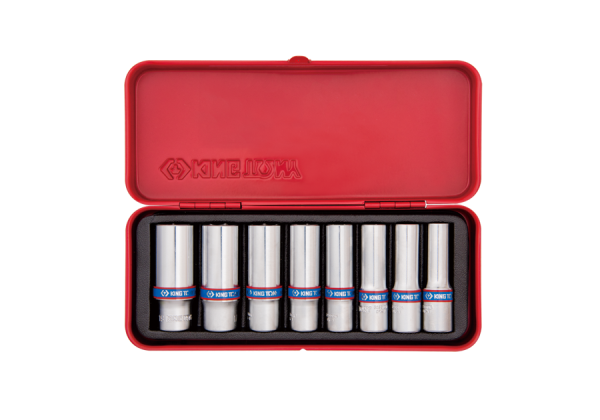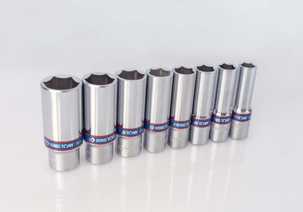 Zestaw nasadek 3/8″ King Tony. W zestawie znajduje się 8 nasadek długich (63 mm ) o końcówce 6-kątnej. Zestaw w metalowej kasecie. W zestawie znajdują się następujące nasadki: 10, 11, 12, 13, 14, 16, 17, 19 mm Karta produktu – 3508MR