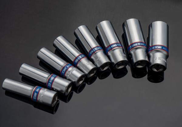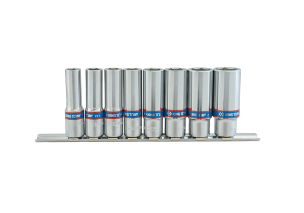 ZESTAW NASADEK 3/8″ 8cz. DŁUGIE 6-kąt 10 – 19mm, ZESTAW NA SZYNIE King Tony