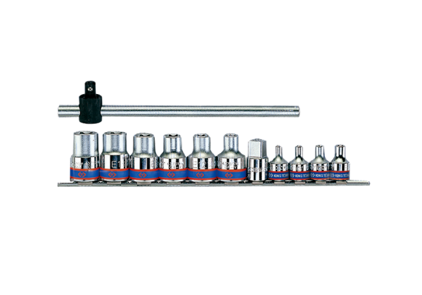 ZESTAW NASADEK 3/8″+1/2″ 12cz. E4-E20+POKRĘTŁO, CHROM, SZYNA King Tony