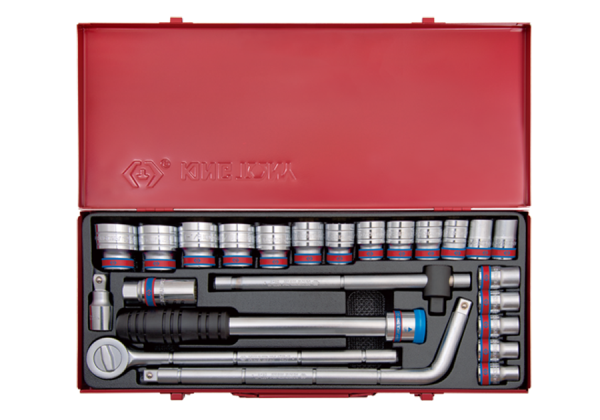 Zestaw narzędzi 1/2″ King Tony w metalowej kasecie. W zestawie znajdują się nasadki krótkie, 12-kątne, calowe, nasadka do świec 21 mm 12-kątna, grzechotka wraz z przedłużką do grzechotki, pokrętło przesuwne oraz pokrętło typu L. Nasadki w rozmiarach calowych: 3/8″, 7/16″, 15/32″, 1/2″, 9/16″, 19/32″, 5/8″, 11/16″, 3/4″, 25/32″, 13/16″, 7/8″, 15/16″, 1″, 1-1/16″, 1-1/8″, 1-3/16″, 1-1/4″ Karta produktu – 4024SR