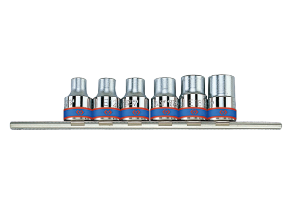 Zestaw nasadek 1/2″, gwiazdkowych firmy King Tony. W zestawie 5 nasadek w rozmiarach E10, E12, E14, E16, E18, E20. Nasadki wykonane z wysokiej jakości materiałów. Zestaw na szynie, ułatwiającej montaż na ścianie. Karta produktu – 4106PR