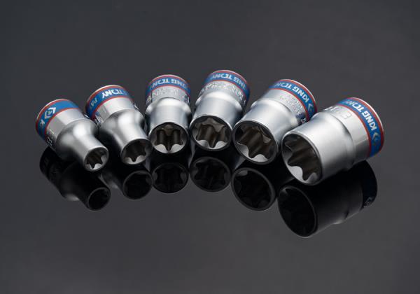 ZESTAW NASADEK GWIAZDKOWYCH 3/8″ 6cz. KRÓTKIE E-TORX E8 – E18, SZYNA, King Tony