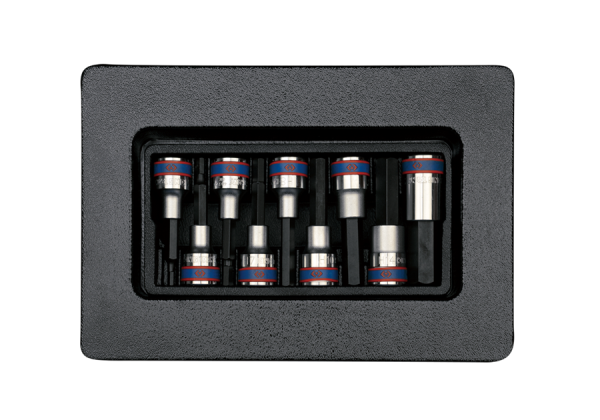 Zestaw nasadek z końcówką HEX King Tony pasujący do wózków narzędziowych. W zestawie 9 nasadek 1/2″ z końcówką imbusową HEX w rozmiarach 4, 5, 6, 7, 8, 10, 12, 14, 17 Karta produktu – 9-4120PR