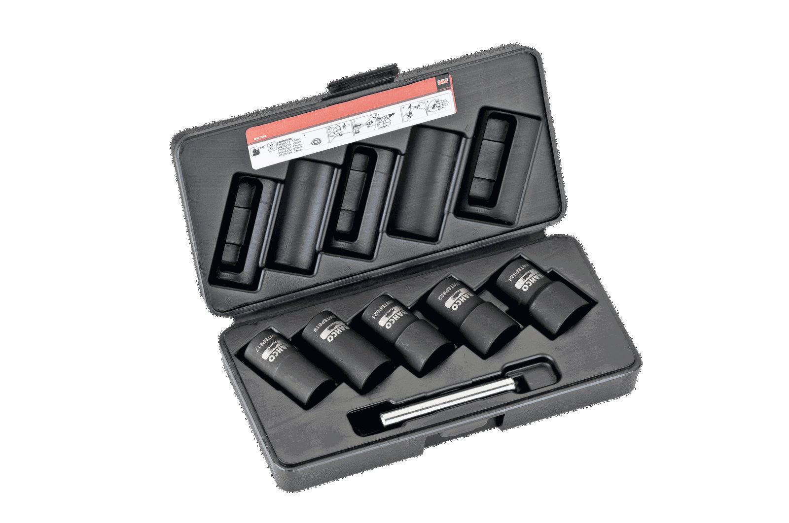 - W zestawie 6 nasadek: 17, 19, 21, 22, 24 mm oraz przebijak. Nasadki dostępne także oddzielnie