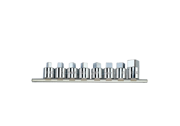 Zestaw nasadek trzpieniowych 1/2″ King Tony. W zestawie, oprócz nasadek znajduje się szyna, długości 230 mm, umożliwiająca powieszenie kompletu na ścianie warsztatu. Nasadki wykonane ze stali chromowo-wanadowej, polerowane oraz chromowane. Rozmiary: 8, 9.5, 10, 10.5, 12, 12.7, 13.5, 19. Karta produktu – 4118MR