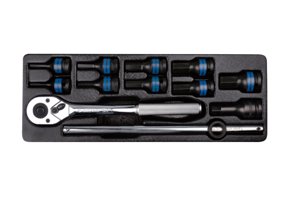 ZESTAW NASADEK UDAROWYCH 1/2″ 12cz. KRÓTKIE HEX H4 – H19 Z AKCESORIAMI, CHROM, WKŁAD DO WÓZKA”