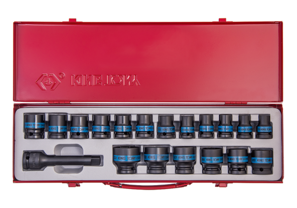 ZESTAW NASADEK UDAROWYCH 1/2″ 19cz. KRÓTKIE 6-kąt. 10 – 32mm + PRZEDŁUŻKA 4260-05P, KASETA King Tony