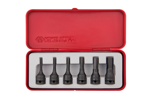 Zestaw nasadek udarowych z końcówką HEX King Tony w metalowej kasecie. W zestawie znajduje się 6 wysokiej jakości chromowo-molibdenowych nasadek 3/8″ długości 55 mm z końcówkami HEX w rozmiarach: 4, 5, 6, 8, 10, 12 Karta produktu – 3406MP