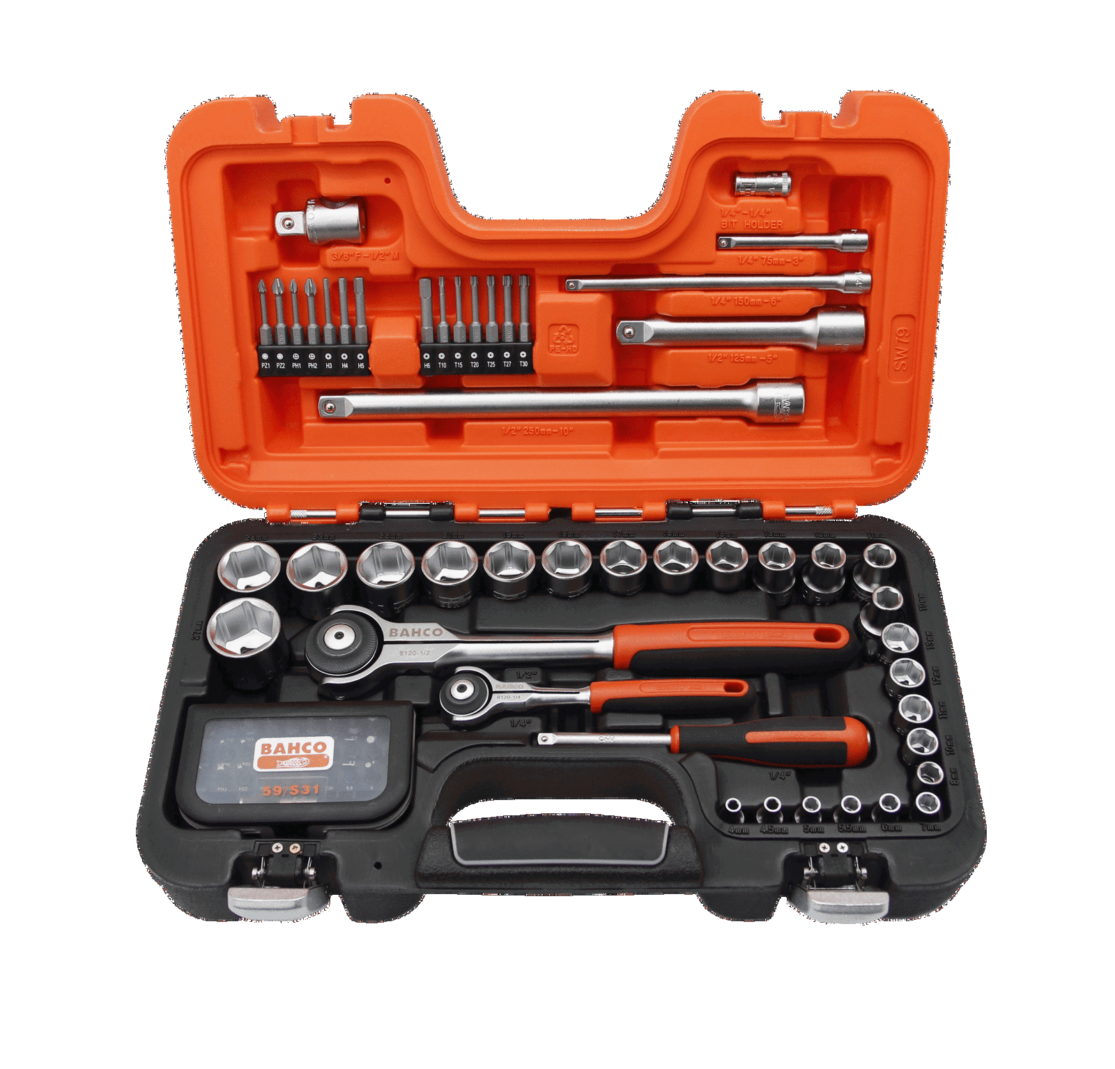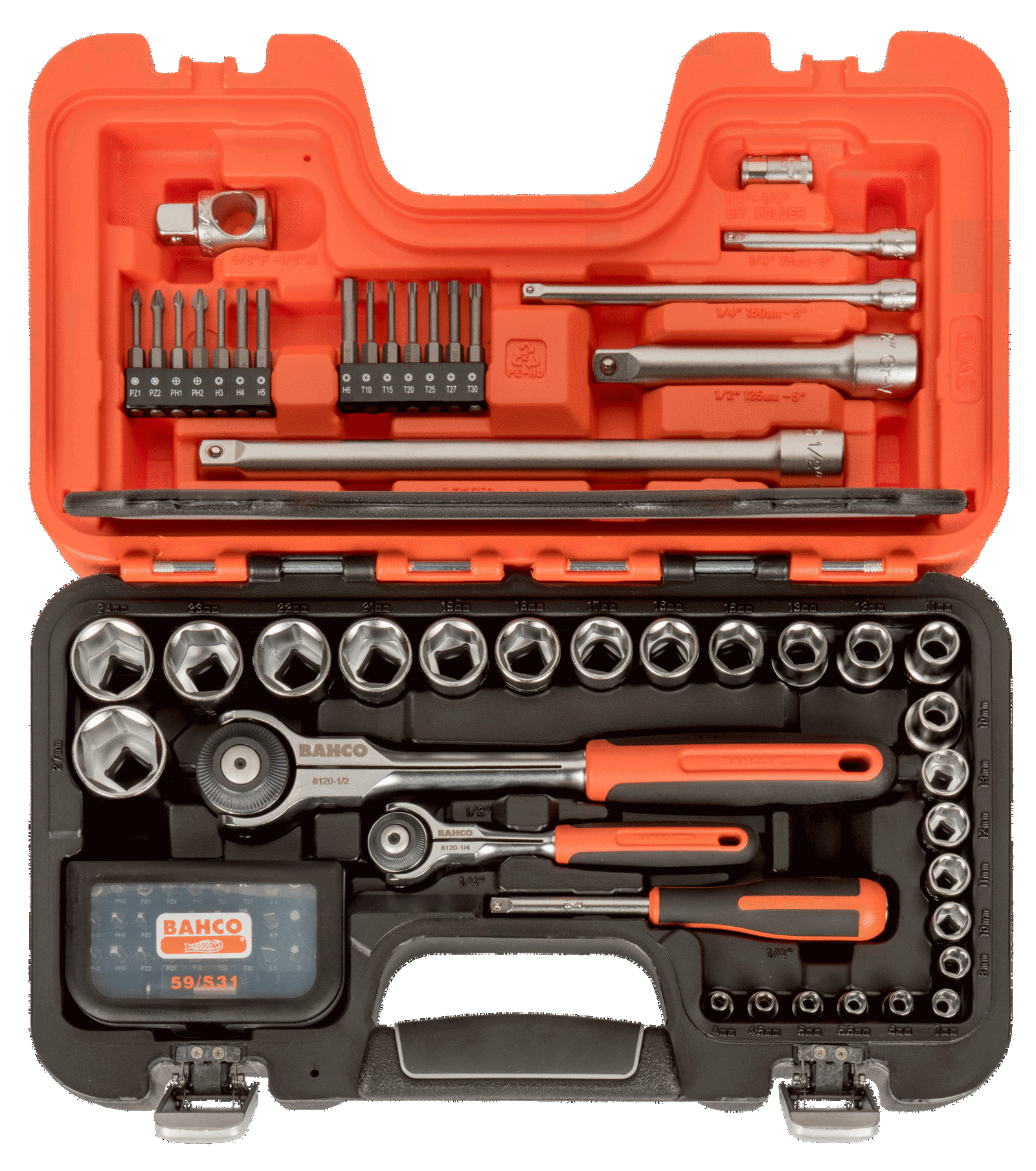 Zestaw nasadek udarowych z grzechotką obrotową i końcówkami – 79 szt. BAHCO