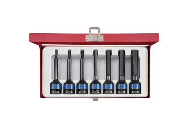 ZESTAW NASADEK UDAROWYCH Z KOŃCÓWKĄ HEX 1/2″ 7cz. DŁUGIE 4 – 14mm, KASETA King Tony