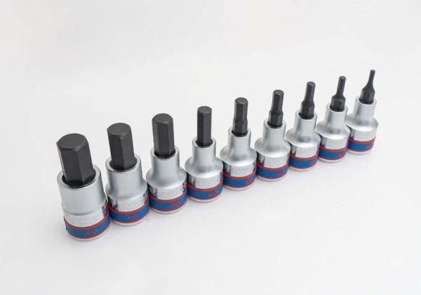 Zestaw nasadek 1/2″ z końcówką HEX firmy King Tony. Zestaw w metalowej kasecie zawiera 9 krótkich nasadek w rozmiarach: 3, 4, 5, 6, 7, 8, 10, 12, 14. Nasadki wykonane ze stali chromowo-wanadowej, bity z chromowo-molibdenowej. Karta produktu – 4110PR