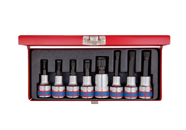 ZESTAW NASADEK Z KOŃCÓWKĄ SPLINE 1/2″ 8 cz. KRÓTKIE/DŁUGIE M5-M16 KASETA King Tony