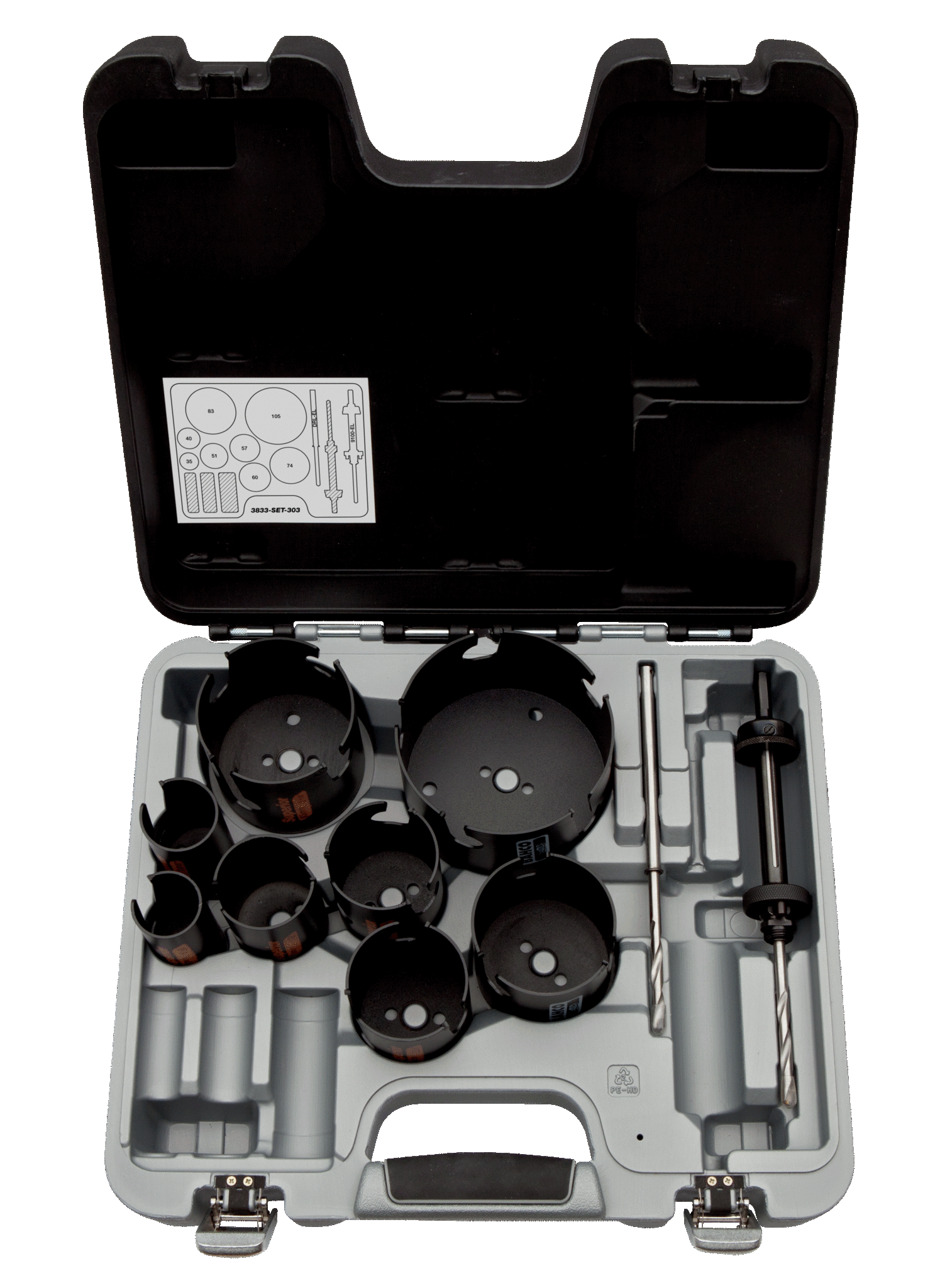 - Zestawy otwornic Superior™ obejmują najpopularniejsze rozmiary narzędzi dla cieśli, hydraulików i elektryków. _x000D_