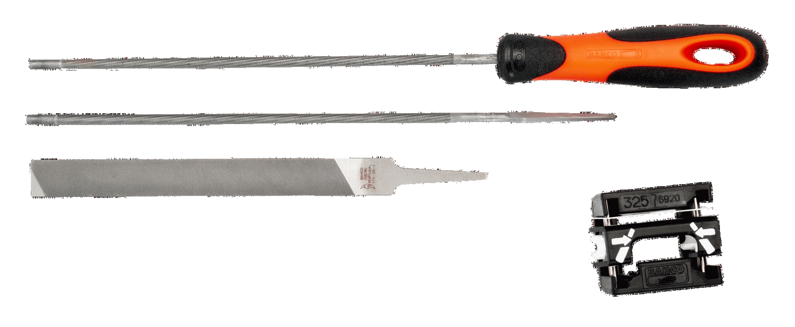 Zestaw pilników łańcuchowych okrągłych 200 mm z rękojeścią Ergo+ i ostrzałką, średnica 5.5 mm, dla pił 3/8″ i .404 BAHCO