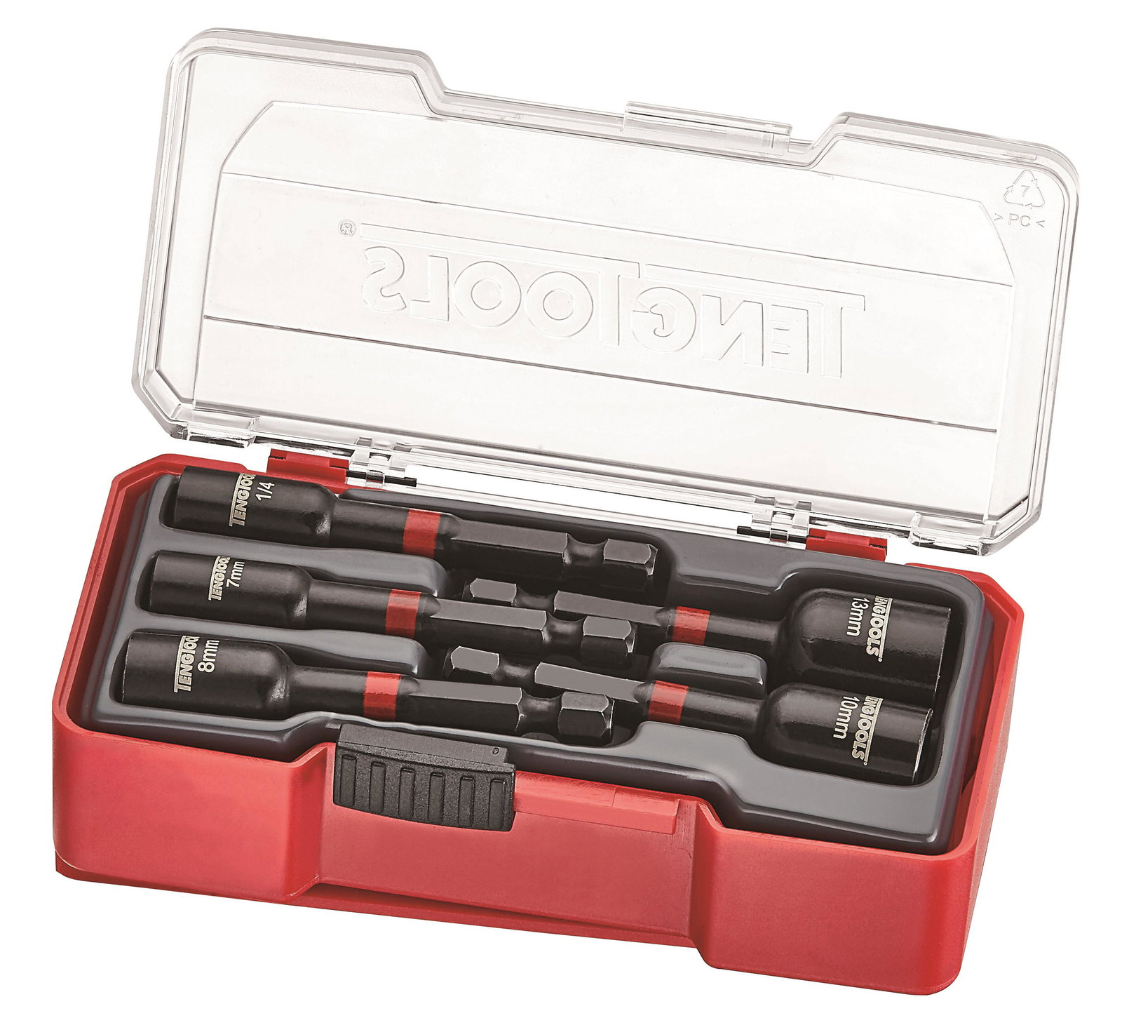 Zestaw 5 uchwytów nasadkowych Impact do wkrętarek. Uchwyty mają długość 65 mm i wyposażone są w magnes. Dostarczany w etui z tworzywa sztucznego, z przezroczystą pokrywką zatrzaskową, osadzoną na zawiasie z metalową ośką. Z uchwytem do mocowania na pasku. Pasuje do zasobnika TTTJ04, który z kolei pasuje do skrzynek i wózków narzędziowych Teng Tools. Uchwyty Impakt są przeznaczone do wkrętarek udarowych.