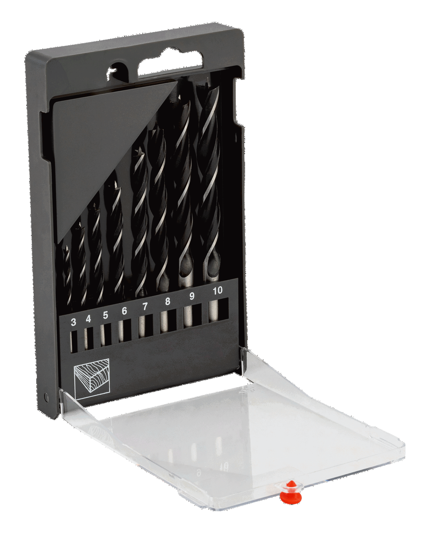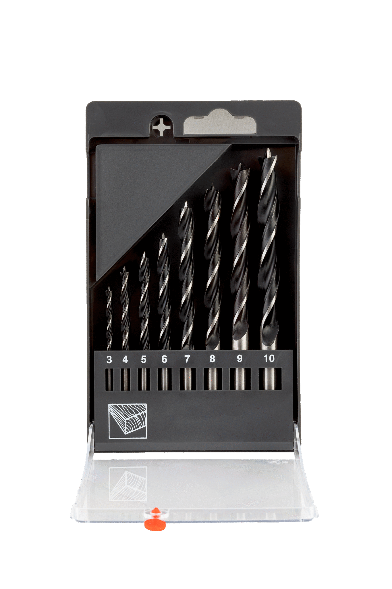 - Zawiera 8 wierteł: 3, 4, 5, 6, 7, 8, 9, 10 mm