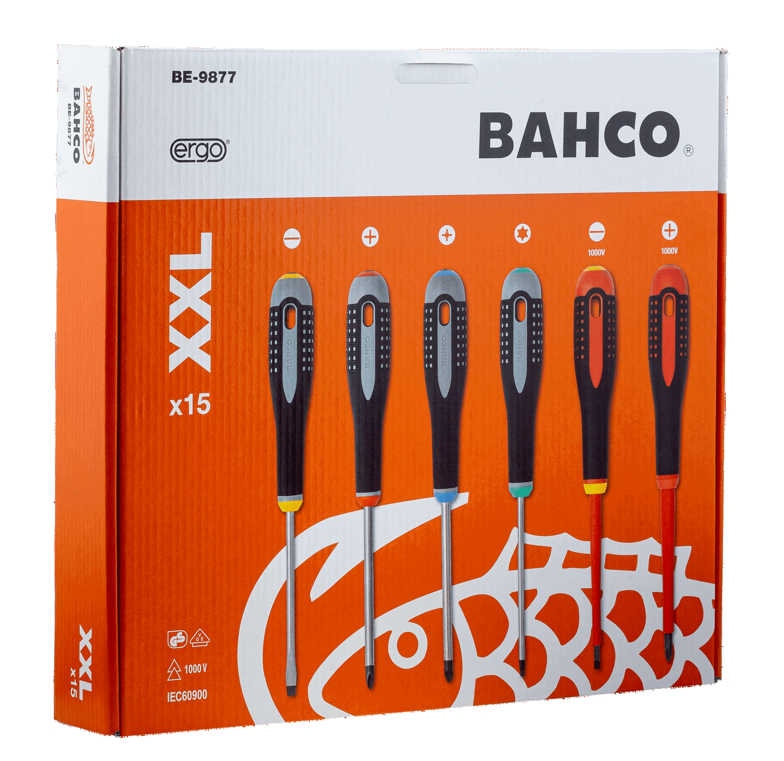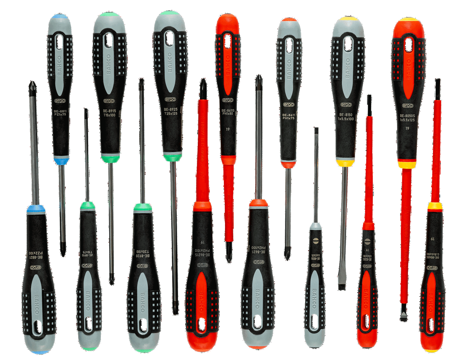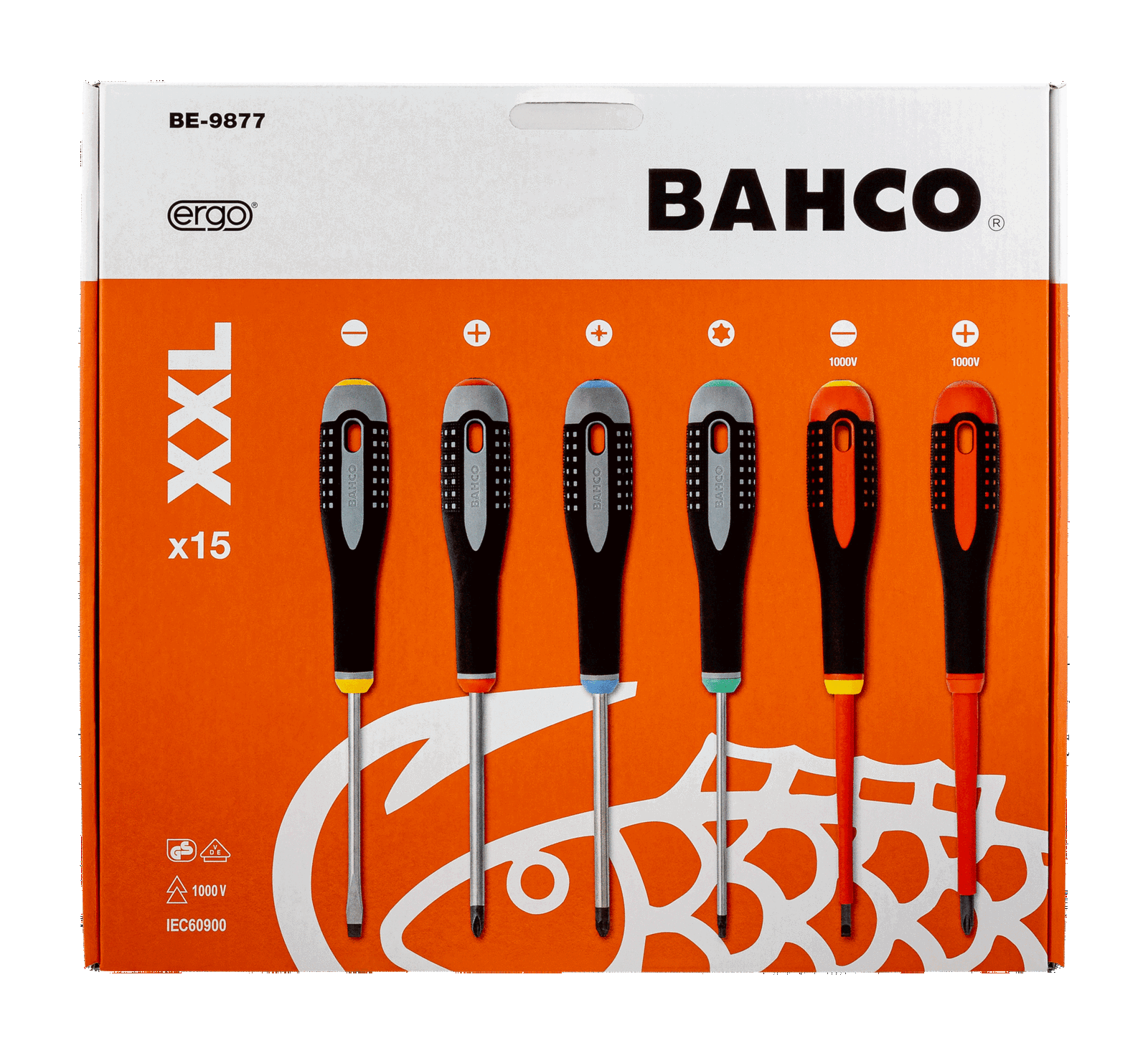 Zestaw wkrętaków ERGO, 15 szt., śruby płaskie, Phillips, Pozidriv, TORX BAHCO