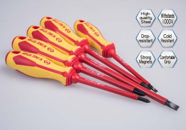 ZESTAW WKRĘTAKÓW IZOLOWANYCH 5 cz. POZIDRIV PZ No.1 x 100, No.2 x 100, PŁASKIE 4 x 100, 5,5 x 125, 6,5 x 150 King Tony