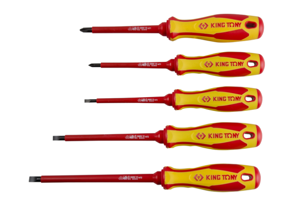 ZESTAW WKRĘTAKÓW IZOLOWANYCH 5cz.KRZYŻAK PH No.1x 100, No.2×100, PŁASKIE 4×100, 5,5×125, 6,5×150 King Tony