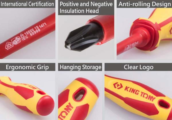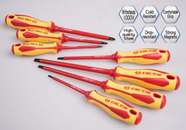 ZESTAW WKRĘTAKÓW IZOLOWANYCH 7 cz. KRZYŻAK PH No.1, No.2, No.3, PŁASKIE 4 X100, 5,5 x 125, 6,5 x 150, 8 King Tony