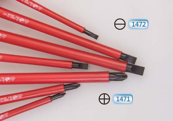 Zestaw wkrętaków izolowanych z końcówkami krzyżowymi oraz płaskimi. Wkrętaki izolowane do 1kV (1000V) . W zestawie śrubokręty krzyżakowe No.1×100, No.2×100, No.3×150 oraz płaskie 4×100, 5.5×125, 6.5×150, 8.0×175 Karta produktu – 30617MR