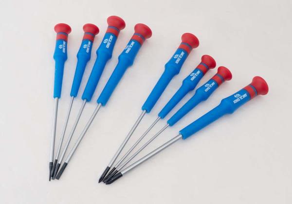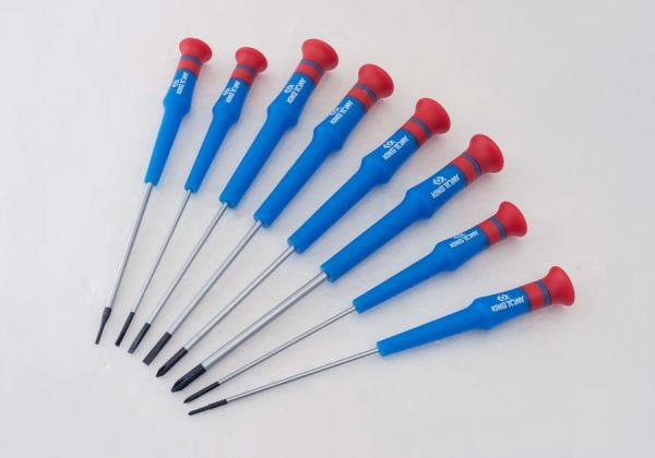 ZESTAW WKRĘTAKÓW PRECYZYJNYCH 8cz. KRZYŻAK No.000 – 1 x 75mm, PŁASKIE 1,5 – 3,0 x 75mm, PUDEŁKO King Tony